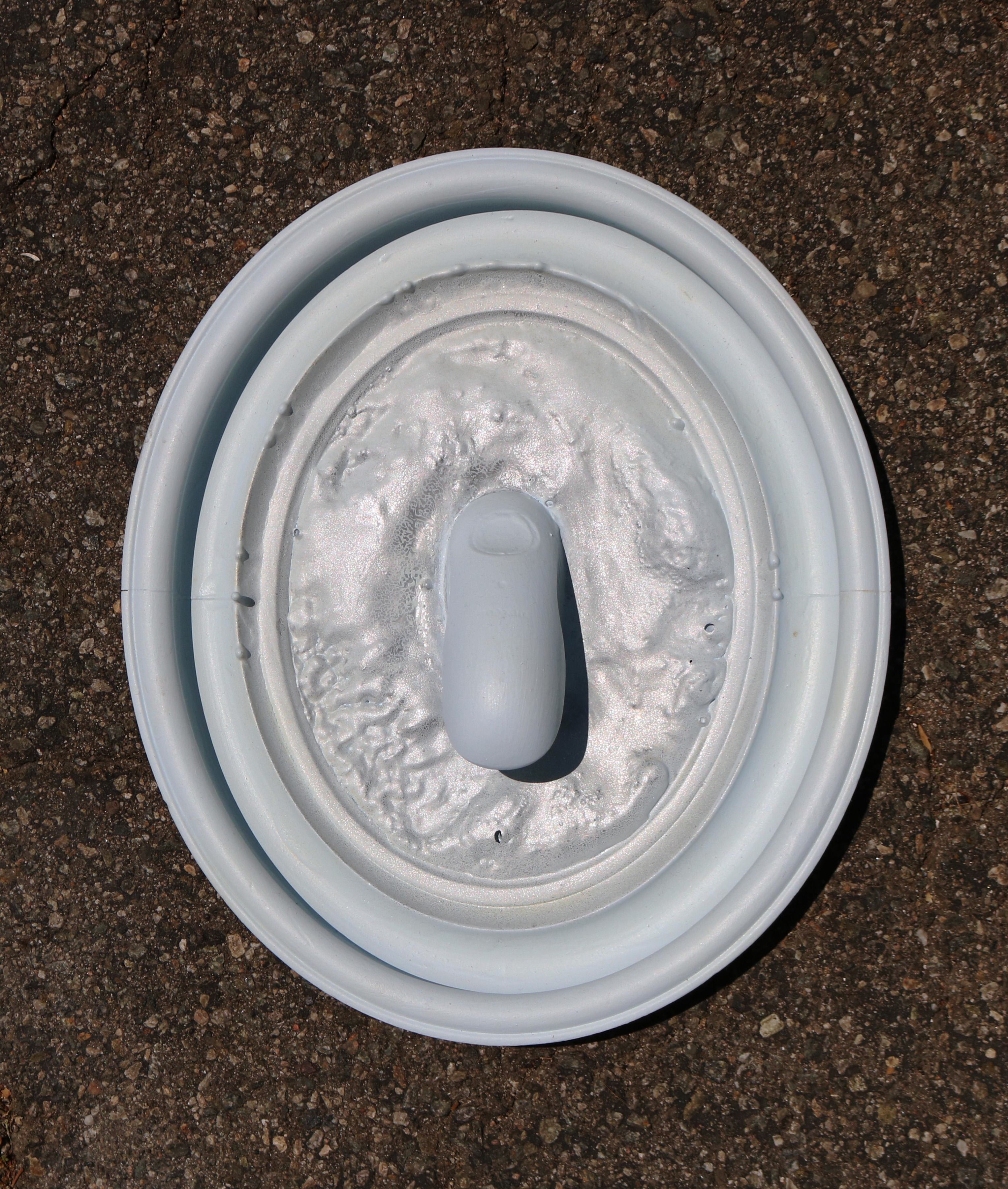 dexcom applicator, urethane, acrylic, spray paint, found frame