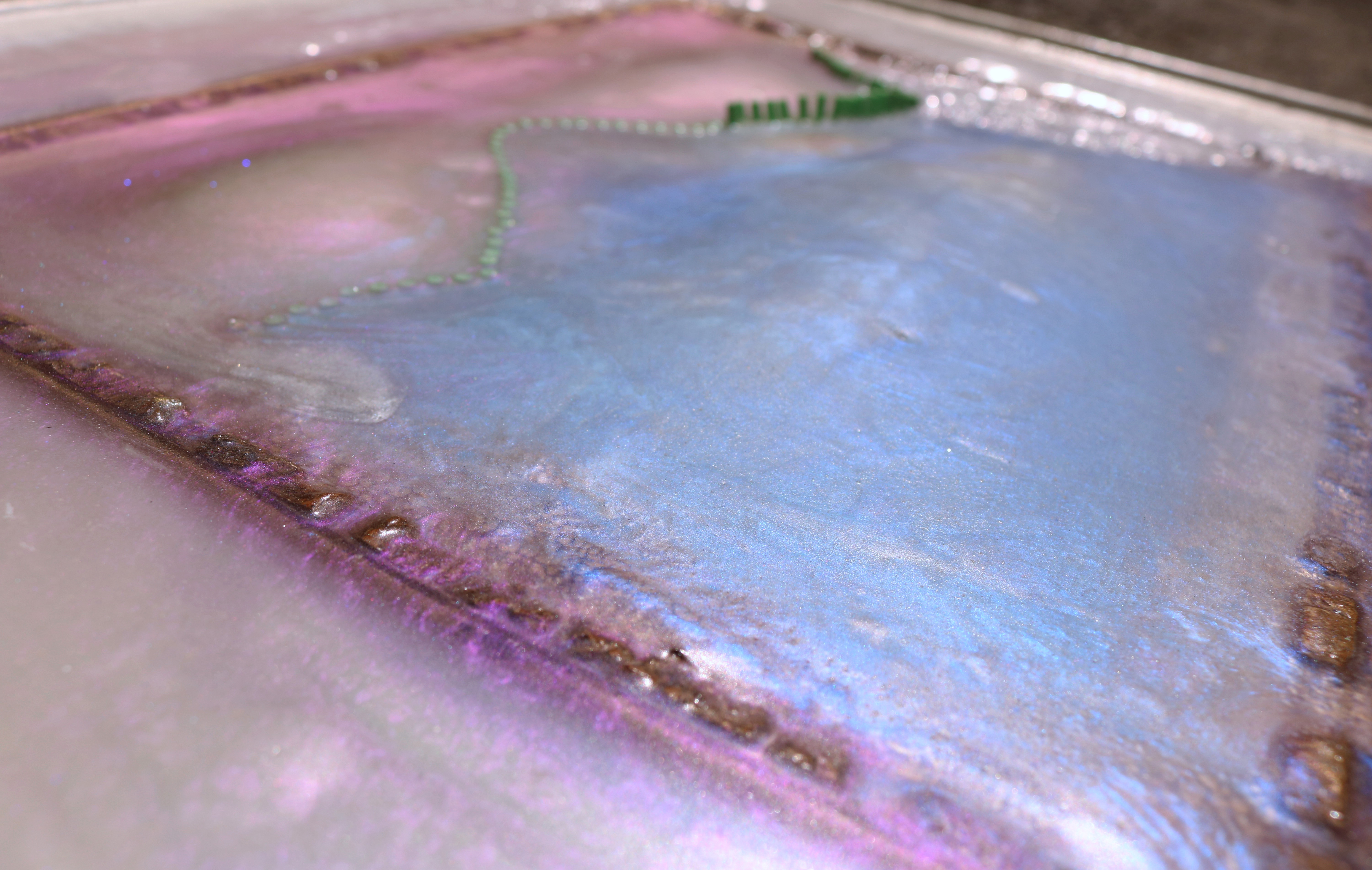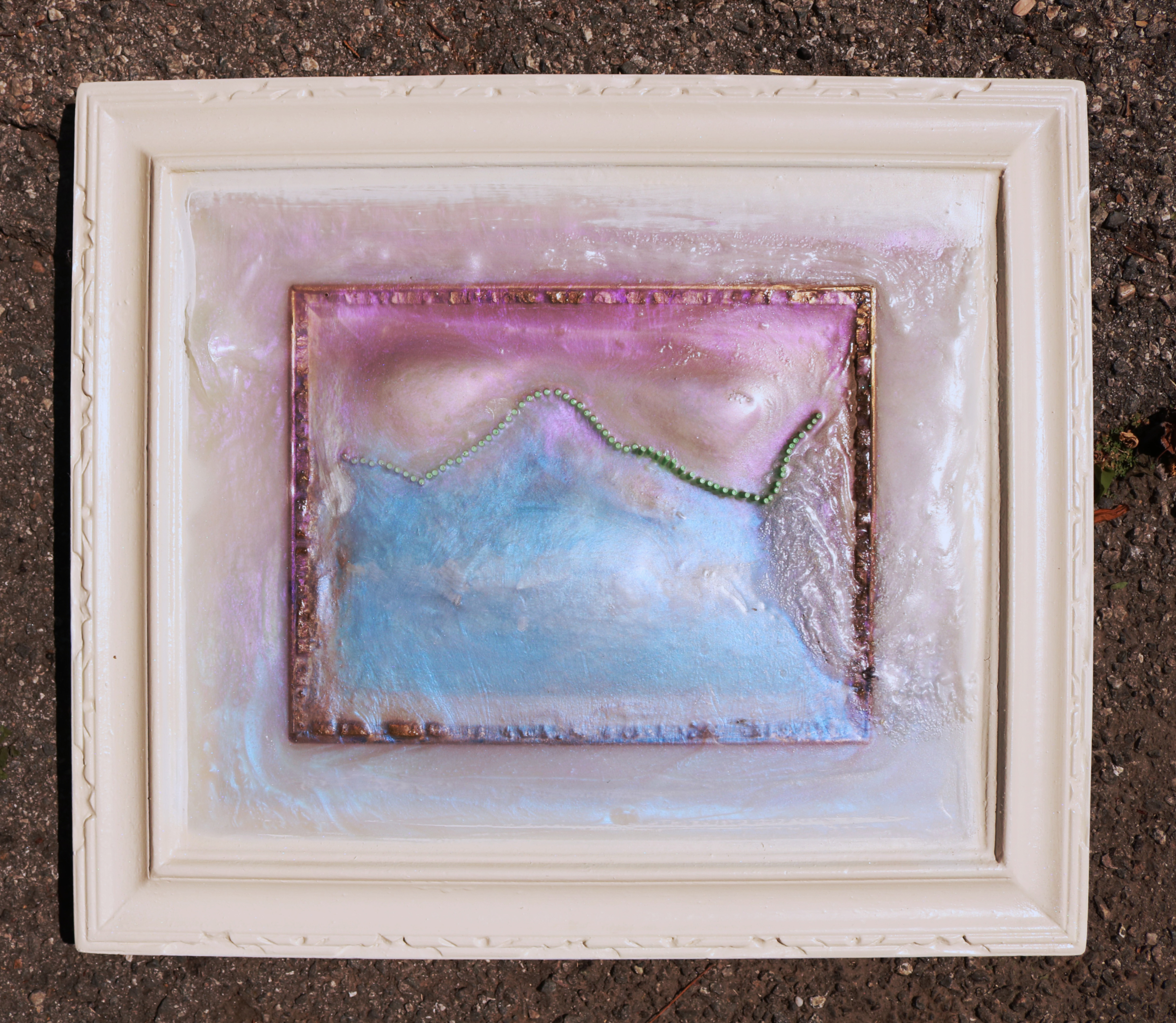 inner needle shields, urethane, acrylic, spray paint, found frame